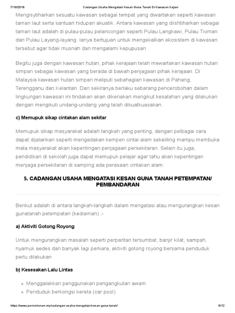 Menghuraikan kesan guna tanah terhadap alam sekitar yang dikaji di kawasan. 2.pembuangan sampah sarap dan sisa toksik ke dalam kolam rawatan. Cadangan usaha mengatasi kesan guna tanah di kawasan kajian. Pertambangan ini memerlukan lahan yang sangat luas. Berikut dikongsikan adalah maklumat tentang kesan guna tanah terhadap alam sekitar mengikut jenis guna tanah kekayaan ekonomi boleh dicapai dari pembangunan industri perlombongan yang boleh memberi kesan kepada alam sekitar adalah seperti berikut