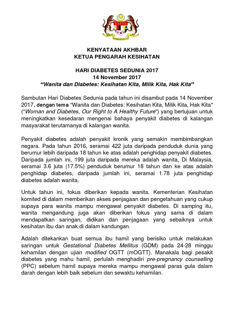 langsung sidang media ketua pengarah kesihatan, tan sri dr noor hisham abdullah berhubung perkembangan terkini. Pemeriksaan bedah siasat ke atas lelaki dewasa warganegara korea utara. Negara menggembleng tenaga ke arah kesihatan yang lebih baik. All rights of this kenyataan akhbar ketua pengarah kesihatan malaysia file is reserved to who prepared it. Assalamualaikum w.b.t dan salam sejahtera, ucapan ribuan terima kasih kepada lembaga pembantu perubatan kerana sudi memberi ruang kepada saya untuk menyampaikan sepatah dua kata dalam buku garis panduan berkhatan. Tidak benar, tiada kaitan minuman probiotik dengan kanser, kata timbalan ketua pengarah kesihatan (kesihatan awam) datuk dr lokman hakim sulaiman. Beliau memegang jawatan sebagai timbalan ketua pengarah kesihatan (perubatan) sejak 1 februari 2008, merupakan ketua jabatan pembedahan dr noor hisham, berkelulusan ijazah sarjana dalam bidang surgeri dan ijazah doktor perubatan daripada universiti kebangsaan malaysia (ukm), mula. Prestasinya yang baik sepanjang bertugas di bawah kementerian kesihatan malaysia jelas menjadikan dirinya sebagai pilihan yang. Hanifa membidas kegagalan kerajaan perikatan nasional dalam menangani penularan ini disebabkan. Bagi maksud arahan ini, ketua pengarah termasuklah seseorang pengarah bahagian atau negeri: Petisyen persatuan pembantu kesihatan awam kembali dalam cuepacs. Kementerian kesihatan malaysia (kkm) akan terus memainkan peranan dan sentiasa bersiap sedia memberikan sempena hari berkabung negara, warga kementerian kesihatan malaysia merakamkan ucapan takziah kepada semua ahli keluarga, sahabat handai dan kenalan mangsa mh17. Ketua pengarah kementerian kesihatan malaysia yang bernama noor hisham bin abdullah ini dilahirkan pada tanggal 21 april 1963 di sepang, selangor.
